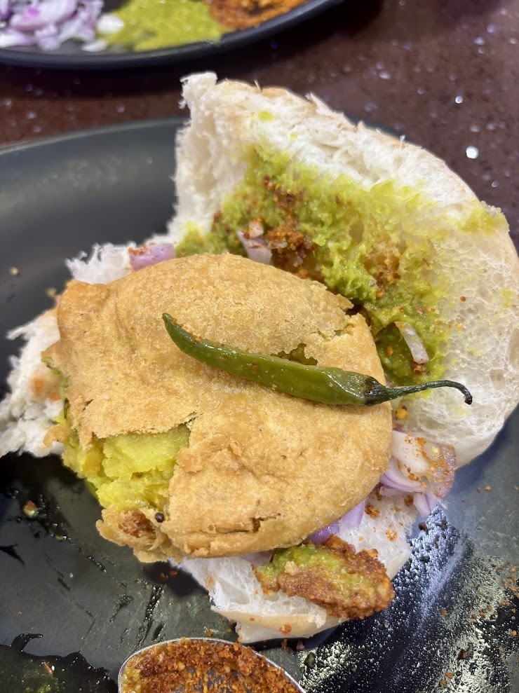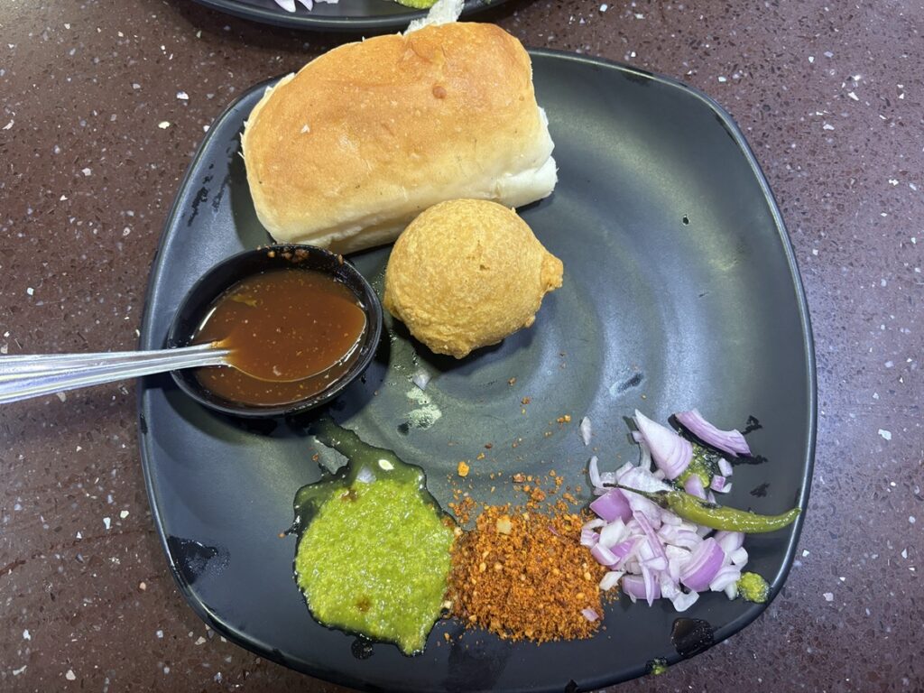 At 9:11 AM, we reached Kunj Vihar Sweet, and finally, the first bite of the day. Their famous jumbo vada pav lived up to the hype: a rectangular, slightly oversized pav, a perfectly round wada, three chutneys, and chopped onions. Simple, iconic, and deeply satisfying. First stop checked off, spirits instantly lifted.