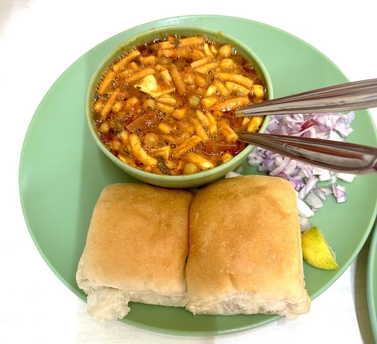 After a short walk to make some space, we reached Mama Kane’s Swatchha Upahar Griha at 12:42 PM. Here, we went for Misal, Wada Usal, and—yes—another round of piyush. Both places share something special beyond taste: courteous, cooperative staff who serve food barefoot, reflecting old-school values and a deep emphasis on hygiene.