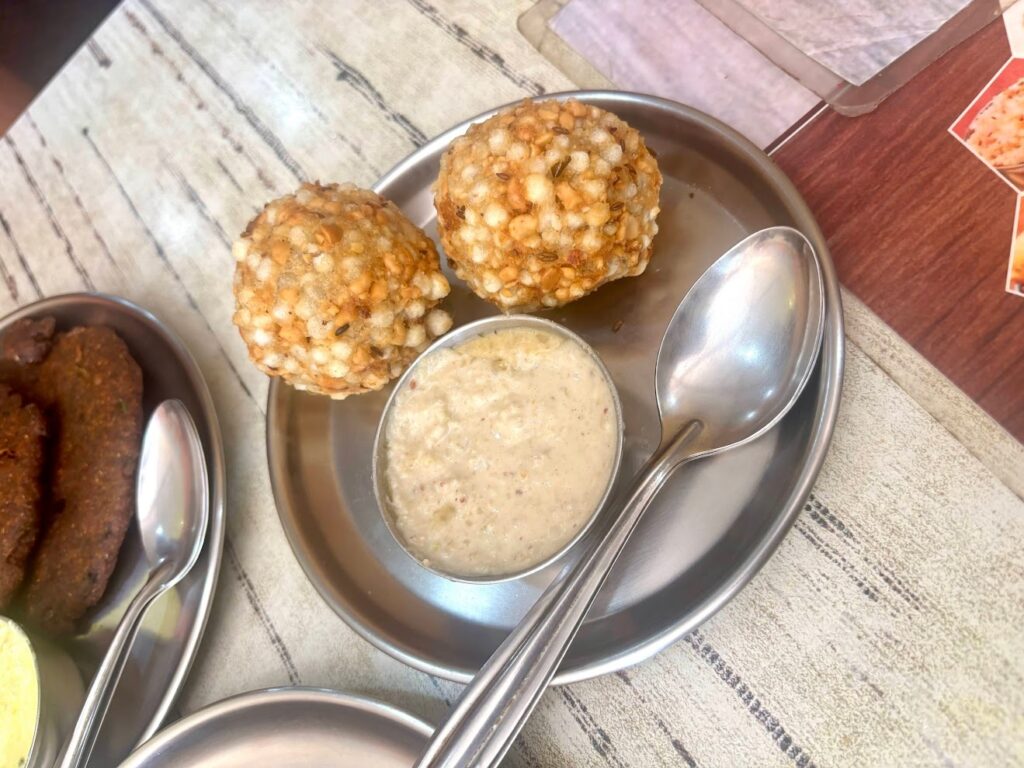 The order was easy: Sabudana wada, Thalipeeth, and our all-time favourite—Piyush. Delicious, comforting, and exactly what we needed.